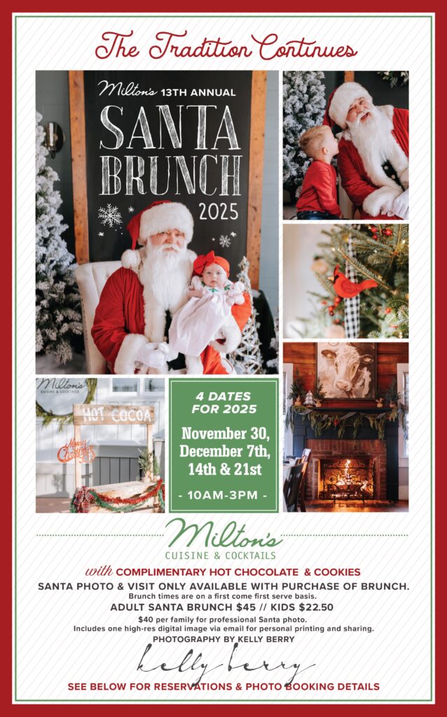 Kick off the holidays with a cozy family brunch at Milton’s — complete with a photo with Santa!